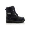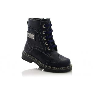 Ботинки ортопедические темно-синего цвета. Сверху на шнурках, с внутренней стороны на молнии. Снаружи кожа (жирный нубук), внутри - натуральный мех (цигейка). Высокая твердая пятка, ортопедический супинатор и не скользящая тракторная подошва.