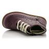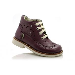 Ботинки ортопедические баклажанового цвета. Сверху регулируются шнурками, с внутренней стороны на молнии. Снаружи и внутри кожаные. Высокая твердая пятка, супинатор и ортопедический каблук Томаса.