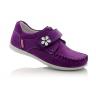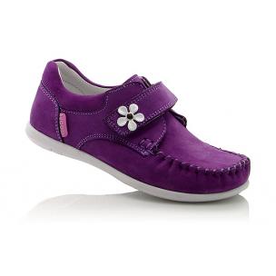 Мокасины сиреневого цвета. Сверху фиксируются липучкой, снаружи нубук, внутри кожа. Есть супинатор и твердая пятка.