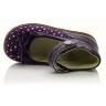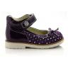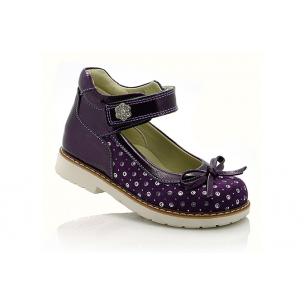 Туфли ортопедические фиолетового цвета с серебристыми кружочками. Сверху регулируются липучкой. Снаружи кожа + нубук, внутри кожаные. Высокая твердая пятка, супинатор и ортопедический каблук Томаса.