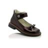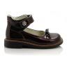 Туфли ортопедические бордового цвета (лак). Сверху регулируются липучкой. Снаружи и внутри кожаные. Высокая твердая пятка, супинатор и ортопедический каблук Томаса.