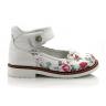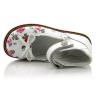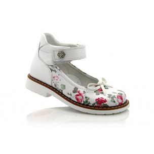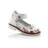 Туфли ортопедические белого цвета с розочками. Сверху регулируются липучкой. Снаружи и внутри кожаные. Высокая твердая пятка, супинатор и ортопедический каблук Томаса.