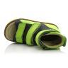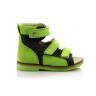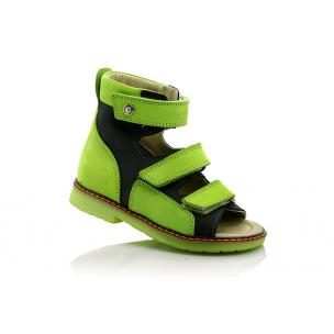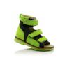 Босоножки ортопедические салатового цвета с графитовыми вставками (с высоким берцем) и открытым носком. Сверху фиксируются тремя липучками. Снаружи нубук + кожа, внутри кожаные. Завышенная твердая пятка, супинатор и ортопедический каблук Томаса.