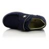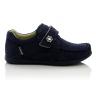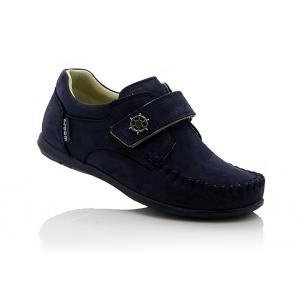 Мокасины темно-синего цвета. Сверху фиксируются липучкой, снаружи нубук, внутри кожаные. Есть супинатор и твердая пятка.