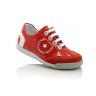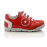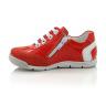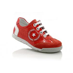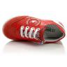 Кроссовки морковного цвета. Сверху регулируются шнурками, с внутренней стороны молнией. Снаружи замша + кожа (лак), внутри кожаные. Есть твердая пятка и супинатор.