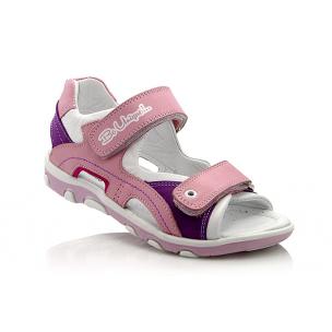 Босоножки розового цвета открытым задником. Регулируются двумя липучками. Снаружи и внутри кожаные, есть супинатор.