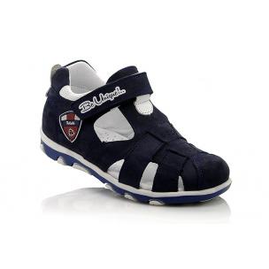 Босоножки темно-синего цвета (с закрытым носком). Сверху регулируются липучкой. Снаружи нубук, внутри кожаные, есть супинатор, твердая пятка.