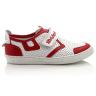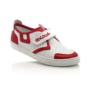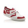 Мокасины-кроссовки белого цвета с красными вставками (перфорированные). Сверху фиксируются широкой липучкой. Снаружи и внутри кожаные. Есть твердая пятка и супинатор.