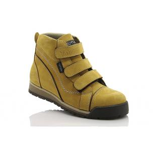 Демисезонные ботинки желто-горчичного (рыжего) цвета. Сверху регулируются тремя липучками. Снаружи жирный нубук (кожа), внутри - на флисе. Есть супинатор, твердая пятка очень прочная подошва.