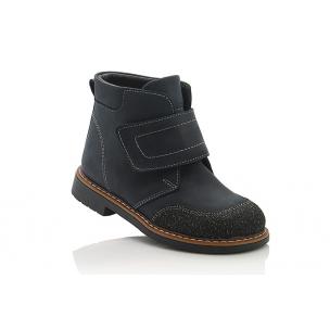 Демисезонные ортопедические ботинки темно-синего цвета. Сверху регулируются широкой липучкой. Снаружи жирный нубук (кожа), внутри на флисе. Есть супинатор, ортопедический высокий задник, каблук Томаса, защитный силиконовый носок.