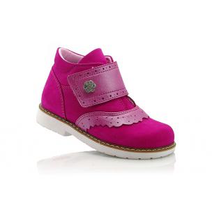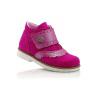 Демисезонные ортопедические ботинки ярко-розового цвета. Сверху регулируются одной широкой липучкой. Снаружи нубук + кожа, внутри - флис. Высокая твердая пятка, супинатор и ортопедический каблук Томаса.