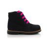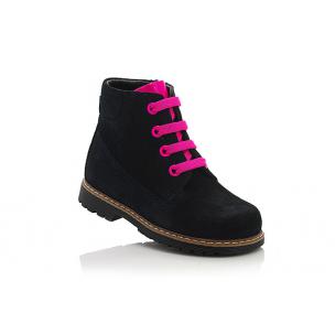 Демисезонные ортопедические ботинки черного цвета. Сверху регулируются шнурками, сбоку на молнии. Снаружи замша, внутри - флис. Высокая твердая пятка, супинатор и ортопедический каблук Томаса.