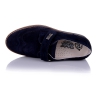 Туфли ортопедические темно-синего цвета. Сверху фиксируются липучкой. Снаружи нубук, внутри - кожа. Есть твердый задник и супинатор.