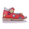 Ортопедические босоножки кораллового цвета с разноцветными цветочками. Сверху фиксируются двумя липучками. Снаружи кожа и внутри кожаные. Высокая твердая пятка, супинатор и ортопедический каблук Томаса.