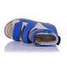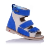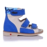 Босоножки-берцы ортопедические бежевого цвета с ярко-синими вставками. Сверху фиксируются тремя липучками. Снаружи нубук + кожа, внутри кожаные. Завышенная твердая пятка, супинатор и ортопедический каблук Томаса.