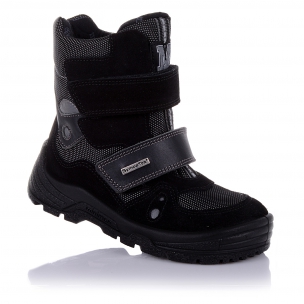 Ботинки черного цвета (на двух липучках). Waterproof system- непромокаемые зимние ботинки Minimen •Подошва из термопласта разработана специально для холодного времени года, не скользит по мокрой поверхности и устойчива к воздействию низких температур до -30 градусов •Непромокаемая мембрана SYMPATEX: обувная подкладка «дышит», но не пропускает воду •Натуральная телячья кожа пропускает воздух, но не пропускает воду •Особая мембрана с тонкой защитной тканью-подкладкой дышит, но не промокает •Закрытый язык с усиленной губкой значительно понижает вероятность попадания воды внутрь •Благодаря расширенному подъему обувь легко одевать и носить •Из 100% шерсти произведена более плотная и мягкая байка Стелька с супинатором