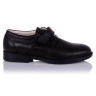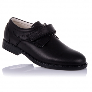 Туфли классические черного цвета. Сверху фиксируются липучкой. Снаружи и внутри кожаные. Есть твердый задники супинатор.