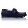 Мокасины темно-синего цвета. Сверху регулируются липучкой. Снаружи и внутри кожаные. Есть твердый задник и супинатор.