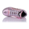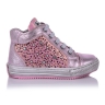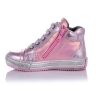 Демисезонные ботинки розового цвета (с декорацией из камней). Сверху регулируются шнурками, с внутренней стороны - на молнии. Снаружи кожа + нубук, внутри - на флисе. Есть супинатор, твердая пятка, очень прочная подошва.