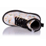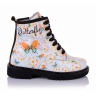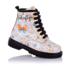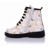 Ортопедические демисезонные ботинки с цветным принтом. Сверху регулируются шнурками, С внутренней стороны - на молнии. Снаружи кожа, внутри - на флисе. Есть ортопедический каблук Томаса, твердая пятка и супинатор.