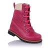 Ортопедические демисезонные ботинки розового цвета. Сверху регулируются шнурками, С внутренней стороны - на молнии. Снаружи кожа (жирный нубук), внутри - на флисе. Есть ортопедический каблук Томаса, твердая пятка и супинатор.