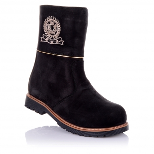 Зимние ортопедические сапожки черного цвета (с вышивкой). С внутренней стороны - на молнии. Снаружи нубук, внутри - на меху (цигейка). Есть супинатор, ортопедическая твердая пятка, каблук Томаса.