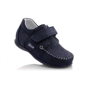 Мокасины Tiflani темно-синего цвета, на широкой липучке. Снаружи нубук, внутри кожа. Есть супинатор и твердая пятка.