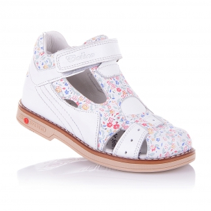 Мягенькие ортопедические босоножки с нежно-цветочным принтом на белой коже станут идеальным дополнением к летнему гардеробу Вашей маленькой модницы! Кожаная стелька с супинатором и твердый задник обеспечивают физиологически правильное положение ножки. Подошва, износостойкая из термокаучука, со скошенным каблуком Томаса и антишоковыми вставками, которые снимают ударную нагрузку на пяточную кость. Застегивается данная модель на липучку, что помогает легко зафиксировать высоту подьема.