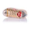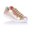 Модные кроссовки для девочки на белой подошве, выполнены из кожи золотистого цвета с глянцем, выглядят ярко и сразу бросаются в глаза. Кожаная стелька с супинатором и твердый задник обеспечивают физиологически правильное положение ножки, а удобная фиксация на молнию сбоку и шнуровку позволит выбрать обувь на ногу разной полноты и высоты свода. Анатомическая износостойкая подошва из термокаучука с имитацией каблука Томаса, очень мягкая и амортизирует, обеспечивая комфортную походку. Ваш ребенок будет в восторге от данной модели.