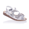 Утонченные ортопедические босоножки из мягкой кожи серебристого цвета с аппликацией из мелких цветочков. Удобная фиксация на липучку поможет зафиксировать туфли на ногу разной высоты свода. Кожаная стелька с супинатором обеспечивают физиологически правильное положение ножки. Анатомическая подошва, износостойкая из термокаучука, с имитацией пробкового материала. В такой паре обуви ребёнок будет себя чувствовать легко и непринуждённо.