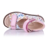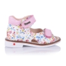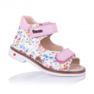 Эксклюзивные ортопедические босоножки с цветочным принтом на белой коже станут идеальным дополнением к летнему гардеробу Вашей модницы! А удобная фиксация двумя липучками позволяет подобрать босоножки на ногу разной полноты и высоты свода. Кожаная стелька с супинатором и твердый задник обеспечивают физиологически правильное положение ножки. Подошва, износостойкая из термокаучука, со скошенным каблуком Томаса и антишоковыми вставками, которые снимают ударную нагрузку на пяточную кость.