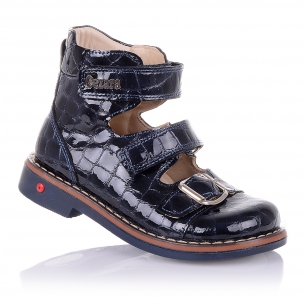 Закрытые и очень удобные ортопедические берцы на девочку из натуральной лаковой кожи темно-синего цвета с принтом под крокодила. Удобная фиксация двумя липучками и застежкой позволяет подобрать обувь на ногу разной полноты и высоты свода. Обувь выполнена в натуральной коже как внутри, так и снаружи. Высокий жесткий берец фиксирует таранно-пяточный и голеностопный сустав, что при постоянном ношении этой обуви формирует правильное развитие суставных поверхностей и препятствует дальнейшему развитию плосковальгусной деформации. Каблук Томаса с удлиненным внутренним краем обеспечит правильную постановку ноги. Анатомическая стелька с системой Air System (для вывода лишней влаги и обеспечения доступа воздуха к ступне) и супинатором поддержит свод стопы и поспособствует здоровому развитию мышц. А хрупкие суставы будут защищены от чрезмерных нагрузок благодаря амортизационной вставке на подошве. Одевая такую пару обуви, Ваш ребенок будет чувствовать себя комфортно и эксклюзивно. Соответствие размера: большемерят (возьмите на размер меньше).