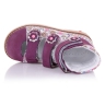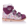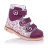 Закрытые и очень удобные ортопедические берцы на девочку с цветочным принтом и вставками из кожи фиолетового цвета. Удобная фиксация тремя липучками позволяет подобрать обувь на ногу разной полноты и высоты свода. Обувь выполнена в натуральной коже как внутри, так и снаружи. Высокий жесткий берец фиксирует таранно-пяточный и голеностопный сустав, что при постоянном ношении этой обуви формирует правильное развитие суставных поверхностей и препятствует дальнейшему развитию плосковальгусной деформации. Каблук Томаса с удлиненным внутренним краем препятствует заваливанию стопы вовнутрь. Анатомическая стелька с системой Air System (для вывода лишней влаги и обеспечения доступа воздуха к ступне) и супинатором поддержит свод стопы и поспособствует здоровому развитию мышц. А хрупкие суставы будут защищены от чрезмерных нагрузок благодаря амортизационной вставке на подошве. Одевая такую пару обуви, Ваш ребенок будет чувствовать себя комфортно и эксклюзивно.