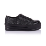 Модные кеды на высокой платформе- тренд нынешнего сезона. Отличное сочетание итальянского текстиля черного цвета с серебристым принтом, натуральной лаковой кожи на носке и широкой подошвы (высота 4см) придадут любому образу экстравагантности, будь то школьная форма или городской лук. Нога фиксируется с помощью шнуровки. Кожаная анатомическая стелька с твердым супинатором и мягкой прослойкой в пяточной части, поддержит свод стопы и поспособствует здоровому развитию мышц и мягкой походке. Подошва из термокаучука достаточно плотная, и легкая. Такие кеды- это стильно и комфортно!