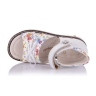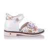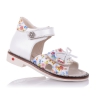 Нежные ортопедические босоножки из натуральной кожи белго цвета с принтом. Удобная фиксация двумя липучками позволяет подобрать босоножки на ногу разной полноты и высоты свода. Кожаная стелька с супинатором и твердый задник обеспечивают физиологически правильное положение ножки. Подошва, износостойкая из термокаучука, со скошенным каблуком Томаса и антишоковыми вставками, которые снимают ударную нагрузку на пяточную кость. Одевая такую пару обуви, Ваш ребенок будет ловить восторженные взгляды окружающих!
