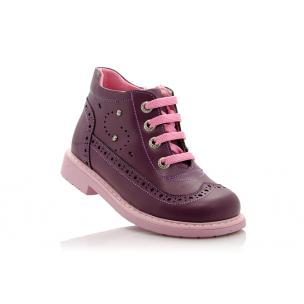 Ботинки Woopy orthopedic баклажанового цвета. Сверху по подъему регулируются шнурками, сбоку на молнии. Снаружи кожаные, внутри утепленные флисом. Высокая твердая пятка, супинатор и ортопедический каблук Томаса.