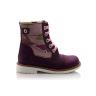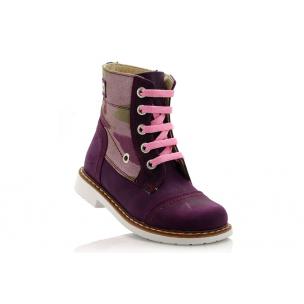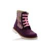 Ботинки Woopy orthopedic баклажанового цвета. Сверху по подъему регулируются шнурками, сбоку на молнии. Снаружи кожаные с цветной вставкой, внутри утепленные флисом. Высокая твердая пятка, супинатор и ортопедический каблук Томаса.