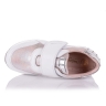 Кожаные, очень мягкие и удобные кроссовки белого цвета с перламутровыми вставками подойдут практически под любой гардероб. Внутренняя мягкая кожаная стелька с супинатором и твердый задник обеспечивают физиологически правильное положение ножки, а удобная фиксация на липучку позволит выбрать обувь на ногу разной полноты и высоты свода. Подошва износостойкая из термокаучука, обеспечивает амортизацию, комфортную походку и хорошее сцепление с твердой поверхностью. Обувь такого качества и дизайна приковывает взгляды!