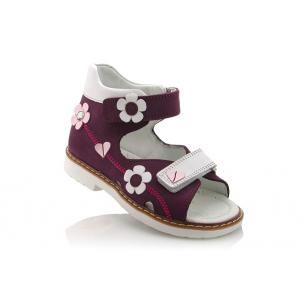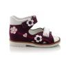 Босоножки ортопедические Woopy orthopedic фиолетово-бордового цвета с цветочками. Фиксируются двумя липучками. Снаружи нубук, внутри кожа. Высокая твердая пятка, супинатор и ортопедический каблук Томаса.