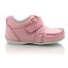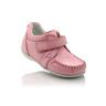 Мокасины нежно-розового цвета. Сверху фиксируются липучкой, снаружи и внутри кожаные. Есть супинатор и твердая пятка.