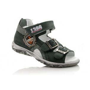 Босоножки темно-серого (графитового) цвета. Снизу фиксируются 2-мя застежками, сверху липучкой. Снаружи и внутри кожаные, есть супинатор, твердая пятка.