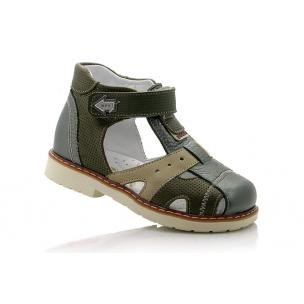 Босоножки ортопедические Woopy orthopedic оливкового цвета (с закрытым носком). Сверху фиксируются липучкой. Снаружи и внутри кожаные. Высокая твердая пятка, супинатор и ортопедический каблук Томаса.