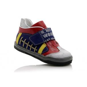 Спортивные ботинки красного цвета с разноцветными вставками. Сверху регулируются широкой липучкой. Снаружи кожа + гладкий нубук, внутри кожаные. Есть твердая пятка и супинатор.