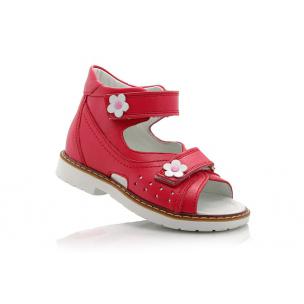 Босоножки ортопедические Woopy orthopedic кораллового цвета. Фиксируются двумя липучками. Снаружи и внутри кожаные. Высокая твердая пятка, супинатор и ортопедический каблук Томаса.