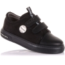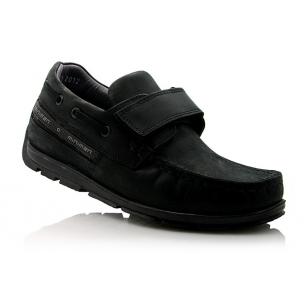 Мокасины Minimen черного цвета, на широкой липучке. Внутри и снаружи кожаные, есть супинатор и твердая пятка.
