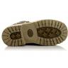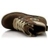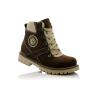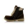 Ботинки темно-коричневого (шоколадного) цвета. Сверху фиксируются шнурками, сбоку на молнии. Снаружи жирный нубук, внутри утепленные флисом. Высокая твердая пятка, супинатор и тракторная не скользящая подошва.