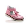 Босоножки ортопедические с закрытым носком розового цвета. Сверху регулируются липучкой. Снаружи лак + гладкая кожа, внутри - кожаные. Высокая твердая пятка, супинатор и ортопедический каблук Томаса.