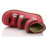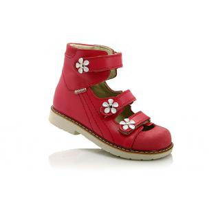 Босоножки ортопедические кораллового цвета (с высоким берцем) и закрытым носком. Сверху фиксируются тремя липучками. Снаружи - кожа + нубук, внутри кожаные. Завышенная твердая пятка, супинатор и ортопедический каблук Томаса.