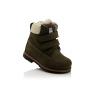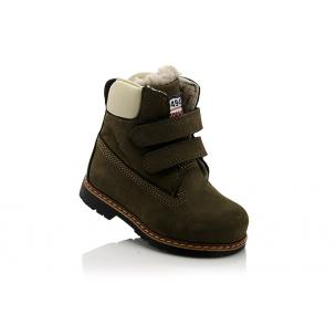 Зимние ботинки темно-коричневого (шоколадного) цвета. Сверху фиксируются двумя липучками. Снаружи жирный нубук, внутри натуральный мех - цигейка. Высокая твердая пятка, супинатор и ортопедическая не скользящая подошва.