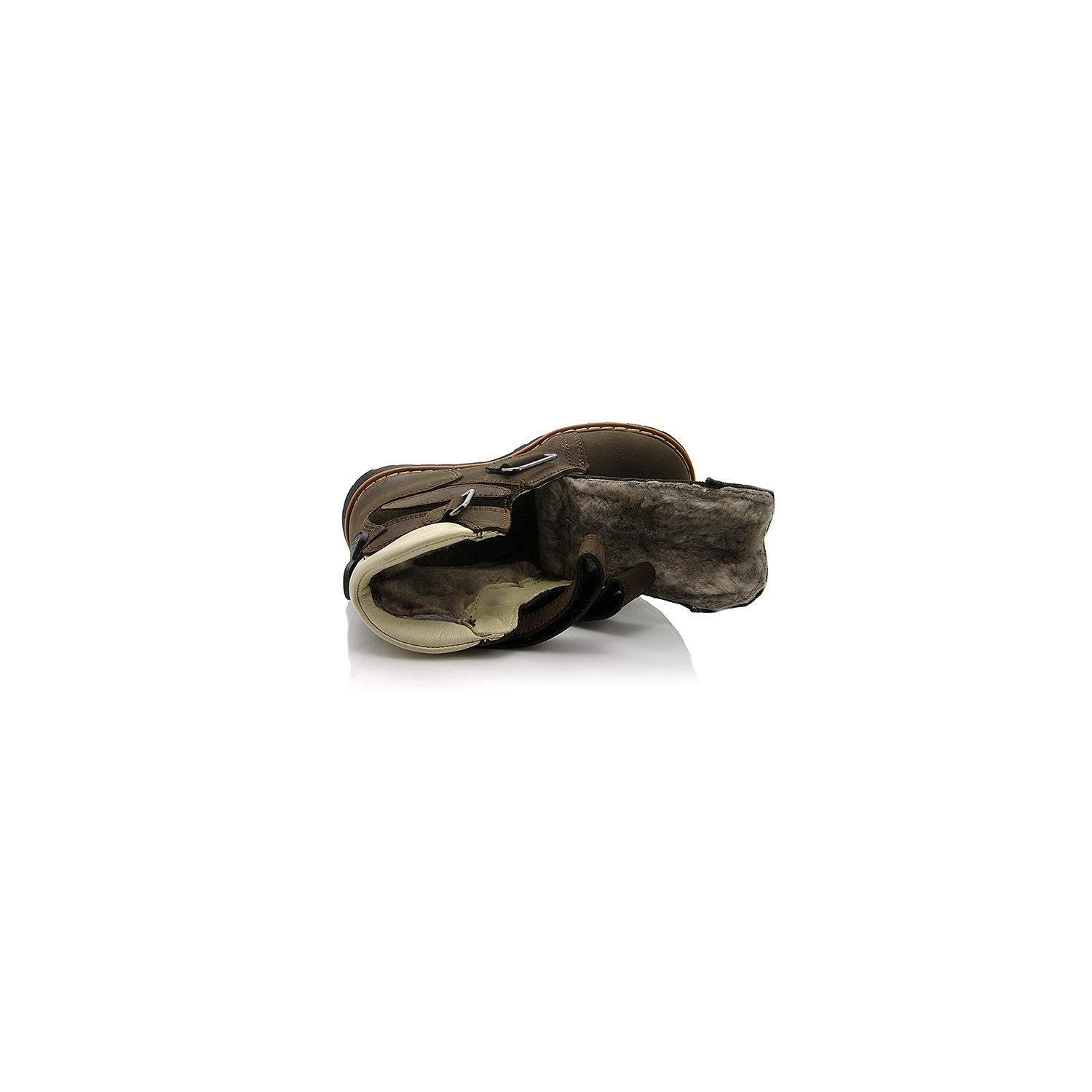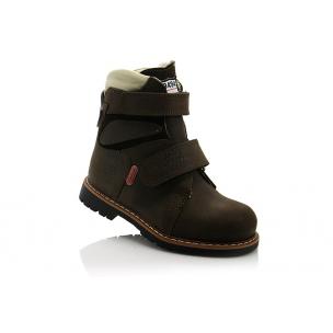 Зимние ботинки темно-коричневого (шоколадного) цвета. Сверху фиксируются двумя липучками. Снаружи жирный нубук, внутри натуральный мех - цигейка. Высокая твердая пятка, супинатор и ортопедическая не скользящая подошва.
